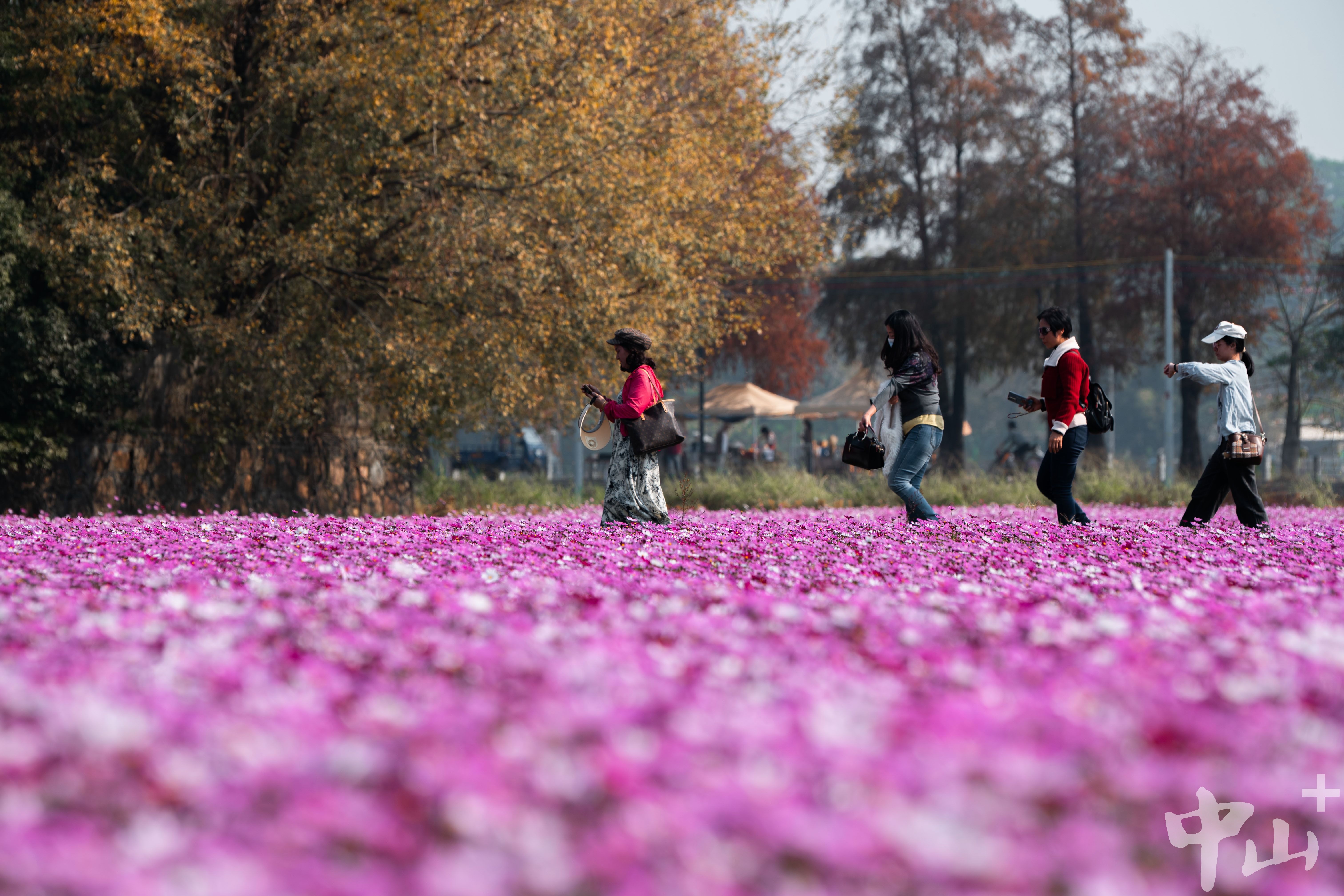 遠(yuǎn)處的高鐵呼嘯而過,近處紅粉白相間的格桑花開得熱鬧,游人或騎著各種顏色的游覽車穿梭在鄉(xiāng)間路上,或沿著田埂漫步在花海中不時(shí)傳來快門輕響……1月17日上午,中山南朗崖口村600多畝稻田里,格?;ㄒ殃懤m(xù)綻放,吸引著大灣區(qū)游客慕名而來,為這座“百千萬工程”省級典型村注入滿滿活力。