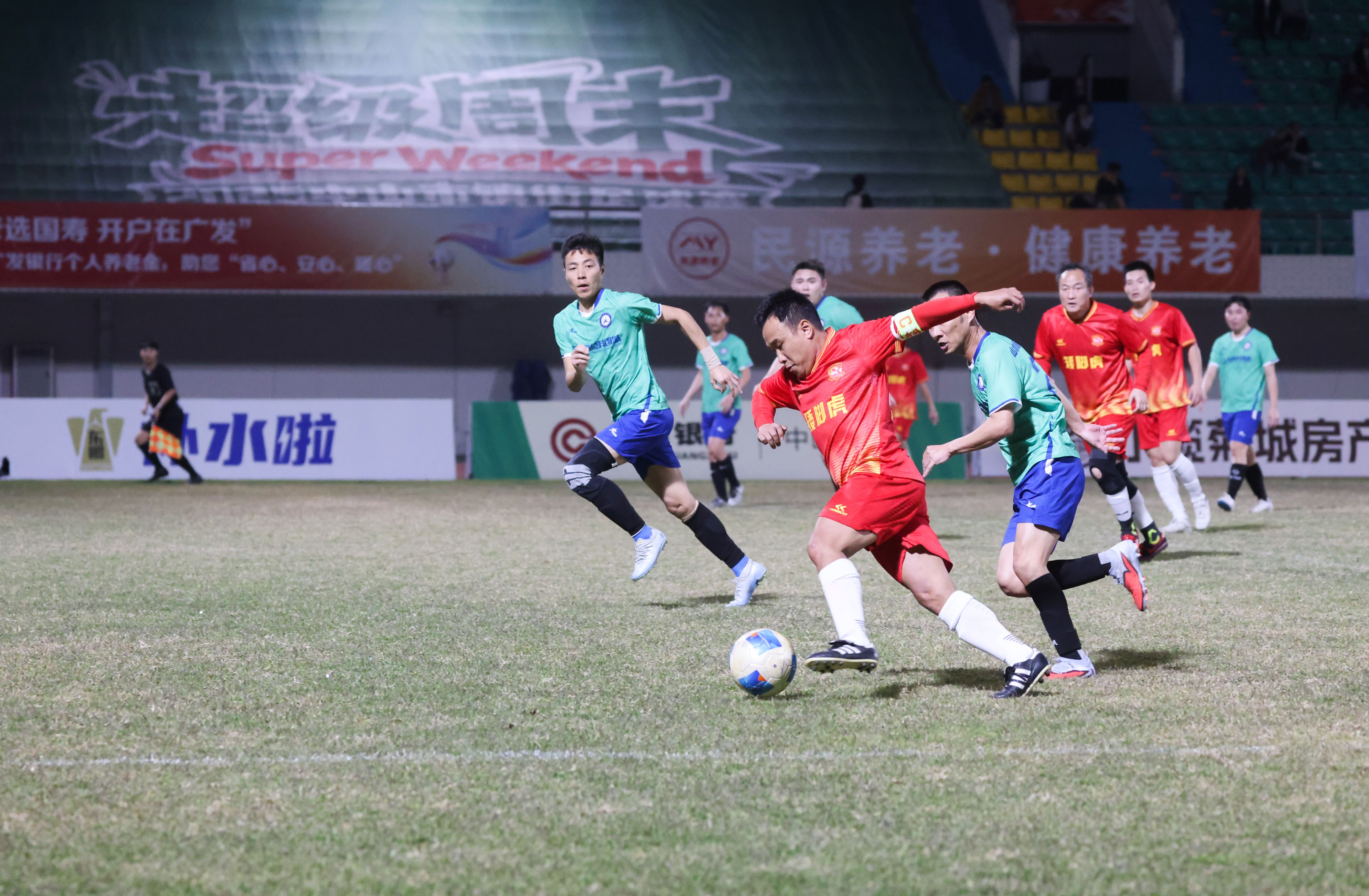 首場較量,綠美五桂隊與三角財魚隊一開場便展開激烈拼搶,場面一度膠著。上半場尾聲階段,三角財魚隊率先打破僵局;比賽第88分鐘,臨近終場,三角財魚隊抓住機會再下一城。綠美五桂隊雖未能改寫比分,但全隊始終拼勁十足,展現(xiàn)出永不言棄的競技精神,場下的親友團也全程吶喊助威。