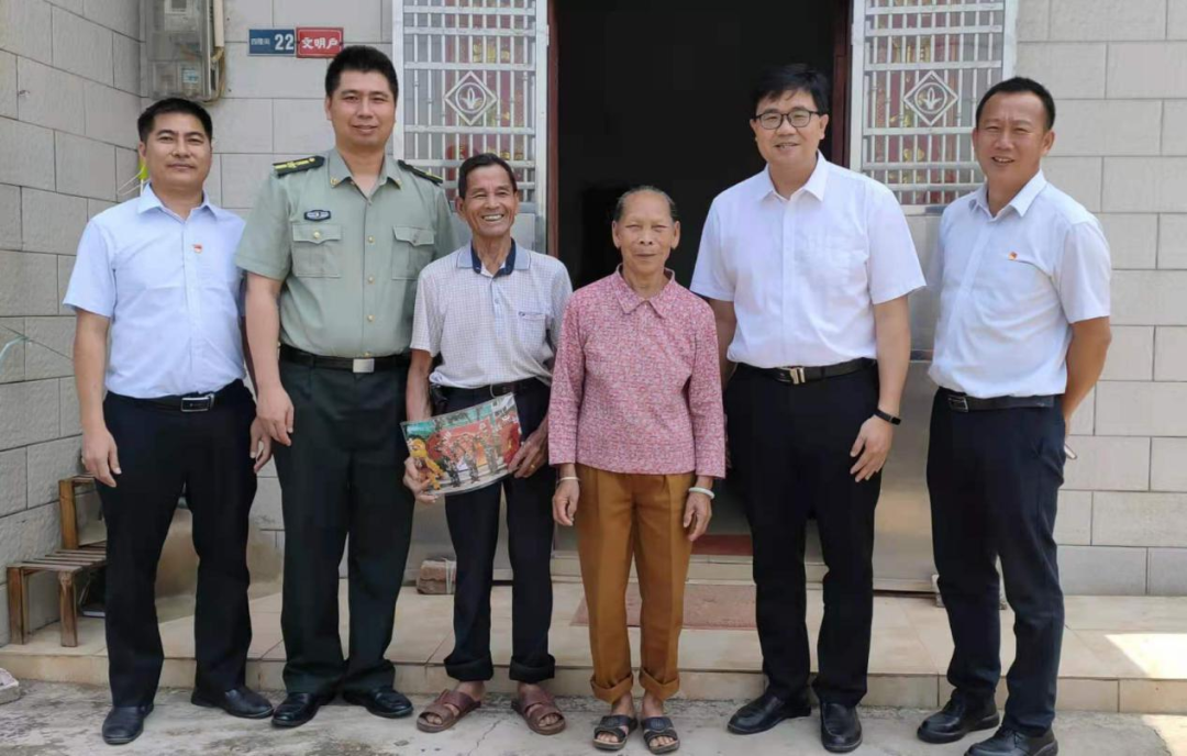 與黃曉聰親屬親切交談,介紹了黃曉聰在軍營的訓(xùn)練和生活情況 為了讓軍人放心,軍屬安心! 4月30日上午,神灣鎮(zhèn)黨委委員張寧溥會(huì)同鎮(zhèn)公共服務(wù)辦、武裝部、退役軍人服務(wù)中心、村社區(qū)等干部一行,先后前往現(xiàn)役軍人陳嘉豪、黃曉聰、曾嘉鴻家中,分別與他們的親屬親切交談,感謝其父母為部隊(duì)培養(yǎng)了一個(gè)優(yōu)秀的戰(zhàn)士,為神灣鎮(zhèn)人民爭光,期間,張寧溥親切問候軍屬的生活、工作和家庭等情況,想方設(shè)法解除軍人的后顧之憂,讓新兵們安心服役。