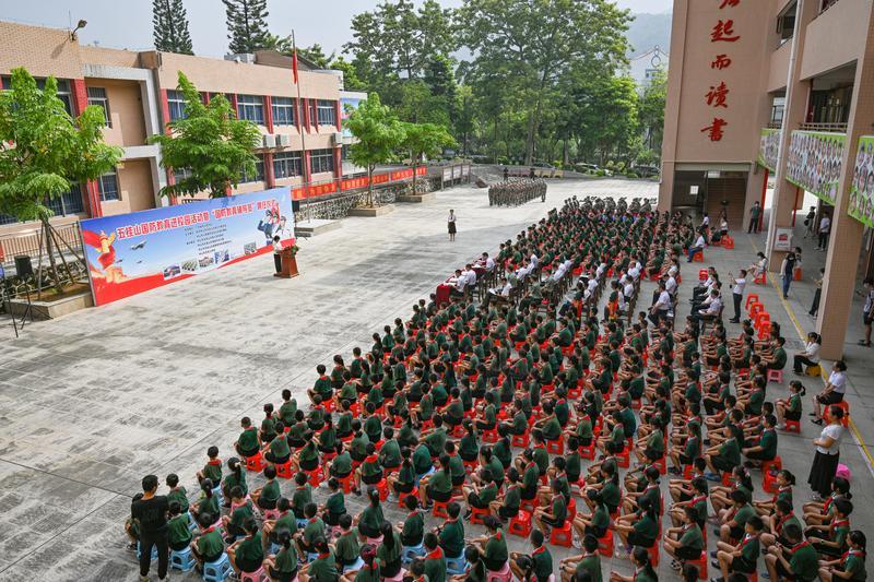 9月18日上午,嘹亮莊嚴(yán)的國歌響徹校園上空,冉冉升起的國旗隨風(fēng)飄揚(yáng)。 今日是九一八事變90周年紀(jì)念日,也是我國第21個(gè)全民國防教育日。為全面樹立廣大青少年的國防意識(shí),進(jìn)一步弘揚(yáng)愛國主義精神,把國防教育工作做好做強(qiáng)做實(shí),五桂山街道在五桂山學(xué)校舉辦國防教育進(jìn)校園活動(dòng)暨“國防教育輔導(dǎo)員”聘任儀式,中山軍分區(qū)司令員李云濤出席活動(dòng)。