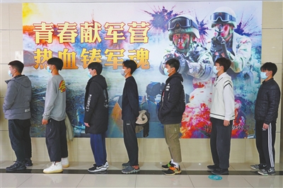 在體檢集合處,“參軍報國,無上光榮”等字眼隨處可見。