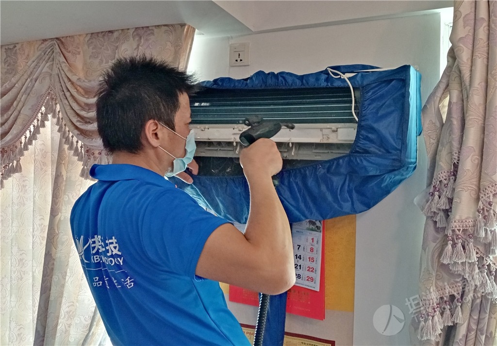上午9時(shí)許,20名志愿者如約而至,來到坦洲鎮(zhèn)退役軍人服務(wù)中心,天空雖然下起了陣雨,卻絲毫沒有阻擋他們的服務(wù)熱情。志愿者們按照預(yù)約名單,合理分工,有序入戶優(yōu)撫對象家中,依次進(jìn)行空調(diào)電路檢測、制冷功能運(yùn)轉(zhuǎn)試行、內(nèi)置空調(diào)機(jī)表層清潔、過濾網(wǎng)(換熱器)清洗等工作環(huán)節(jié),保證空調(diào)能夠在長期放置的情況下正常啟動、安全運(yùn)轉(zhuǎn),恢復(fù)健康、清新的空氣環(huán)境,保障他們身體健康和生命安全。
