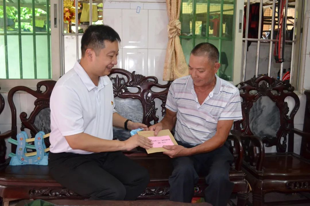 “生活上有什么困難?”“家里近況可好?”當(dāng)天下午,黃聲群一行來到陳炎根家中,為他送上慰問金,認(rèn)真傾聽其實際困難和生活需求,感謝根叔為黨和人民所作出的貢獻(xiàn)。