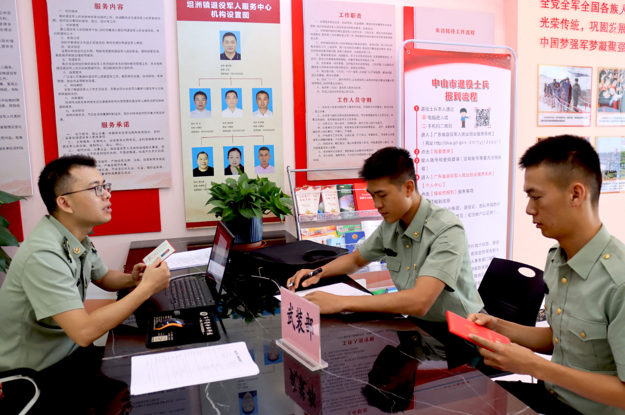 進(jìn)入9月份,坦洲鎮(zhèn)陸續(xù)迎來返鄉(xiāng)報(bào)到的2021年秋季退役士兵。為進(jìn)一步提升服務(wù)水平,切實(shí)讓返鄉(xiāng)退役士兵感受到家鄉(xiāng)的溫暖和社會(huì)的尊崇,坦洲鎮(zhèn)公共服務(wù)辦公室、退役軍人服務(wù)中心聯(lián)合鎮(zhèn)人民武裝部、公安分局、人社分局等部門,提前謀劃、精心組織,想退役士兵之所想,急退役士兵之所急,竭誠為戰(zhàn)友們提供溫馨便捷的“一站式”服務(wù)。
