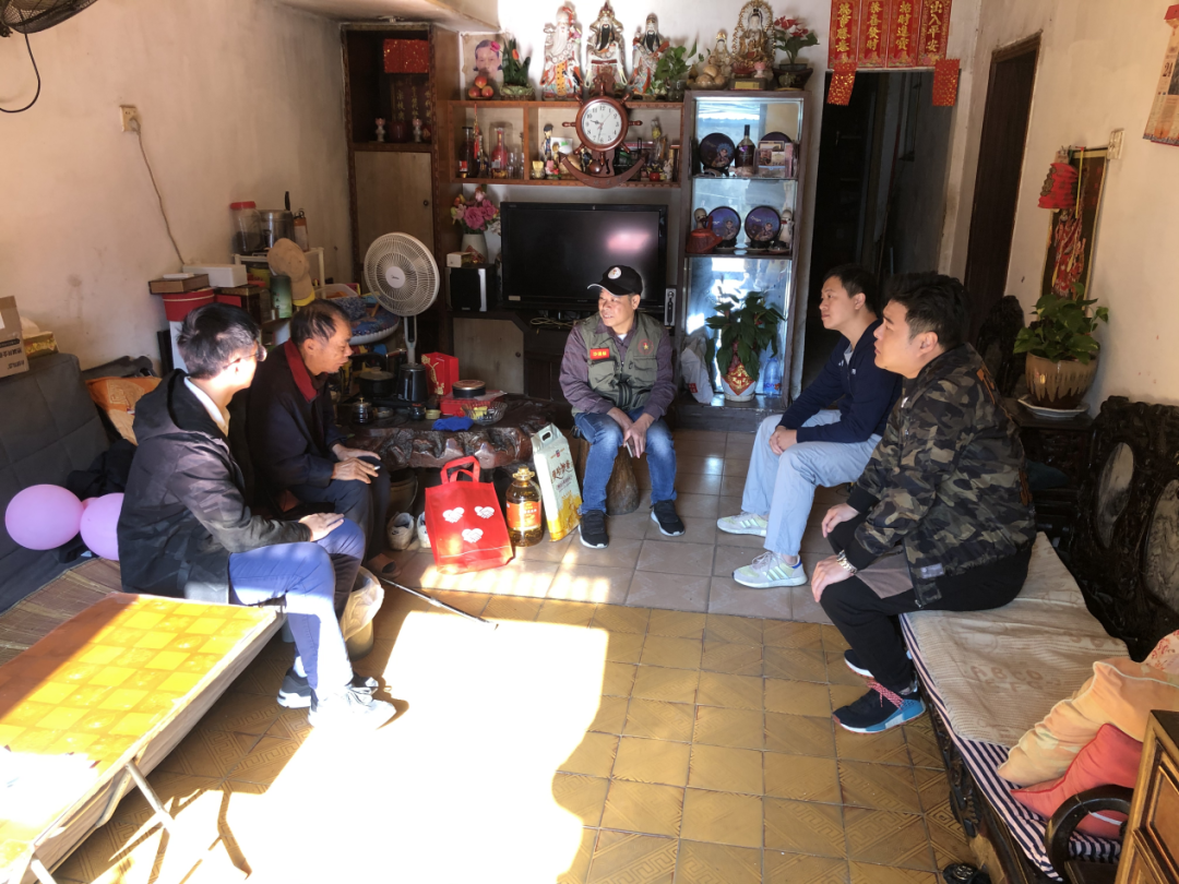 ▲沙溪鎮(zhèn)副鎮(zhèn)長(zhǎng)黃家樂帶隊(duì)到港園村走訪慰問困難退役軍人