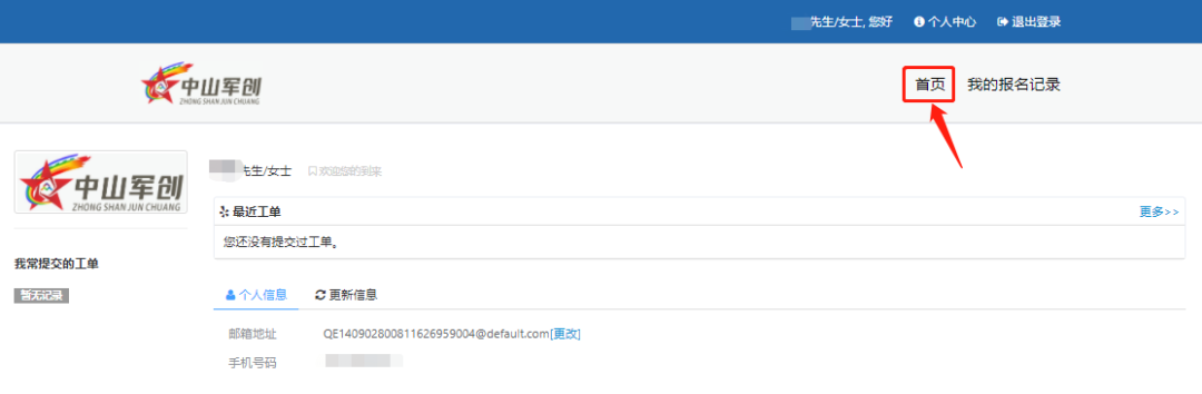 圖4 03 登錄信息 注冊成功后自動跳轉(zhuǎn)至登錄界面,填寫相應(yīng)信息后登錄賬號,進(jìn)入個(gè)人中心首頁,將系統(tǒng)默認(rèn)郵箱更改為個(gè)人常用郵箱,方便大賽執(zhí)委會通知發(fā)送。如圖5-6所示: