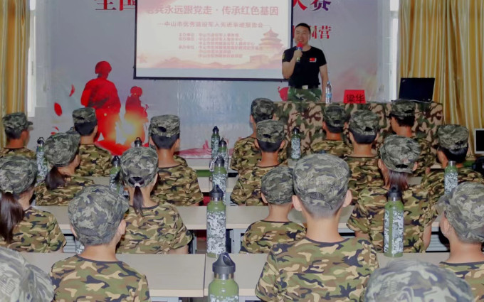 老兵鄭容添表示,老兵宣講團(tuán)是一個(gè)學(xué)習(xí)的平臺(tái),加入宣講團(tuán)對(duì)個(gè)人來說是一種義務(wù)與責(zé)任,成員們將不忘初心,牢記使命,為坦洲的國防和青少年成長(zhǎng)教育盡一點(diǎn)微薄之力,為坦洲和美發(fā)展講好優(yōu)良傳統(tǒng)和革命故事,激勵(lì)青少年健康成長(zhǎng)。 “老兵宣講團(tuán)”各成員在現(xiàn)場(chǎng)分享退役后工作和創(chuàng)業(yè)經(jīng)歷,介紹了開展各類志愿活動(dòng)的故事。老兵們的好經(jīng)驗(yàn)、好做法讓大家很受啟發(fā)。 坦洲鎮(zhèn)公共服務(wù)辦公室負(fù)責(zé)人表示,退役軍人為國防和軍隊(duì)建設(shè)作出了重要貢獻(xiàn),是社會(huì)主義現(xiàn)代化建設(shè)的重要力量,是黨和國家的寶貴財(cái)富。組建“老兵宣講團(tuán)”開展紅色宣講活動(dòng)意義重大,要結(jié)合在“八一”“國慶”“黨的二十大”等重要時(shí)間節(jié)點(diǎn),有計(jì)劃地開展“老兵宣講團(tuán)”進(jìn)學(xué)校、進(jìn)社區(qū)、進(jìn)農(nóng)村、進(jìn)機(jī)關(guān)、進(jìn)企業(yè)等宣講活動(dòng),大力弘揚(yáng)優(yōu)秀退役軍人的先進(jìn)事例,營(yíng)造崇軍優(yōu)屬的良好社會(huì)氛圍,為全鎮(zhèn)經(jīng)濟(jì)社會(huì)發(fā)展凝聚強(qiáng)大力量。 當(dāng)天下午,“老兵宣講團(tuán)”成員梁華來到坦洲鎮(zhèn)雛鷹國防教育研學(xué)基地,為開展夏令營(yíng)軍訓(xùn)的60余名學(xué)生上了一堂生動(dòng)的愛國主義教育課。梁華結(jié)合自身16年的軍旅生涯向?qū)W生們普及國防教育知識(shí),講述強(qiáng)軍興軍歷史及中國軍人的職責(zé)和使命,讓孩子們近距離感受軍人氣質(zhì)和榮耀,增強(qiáng)他們強(qiáng)國強(qiáng)軍、保家衛(wèi)國的責(zé)任感和使命感。  ▲“老兵宣講團(tuán)”成員梁華給學(xué)生上國防教育課。