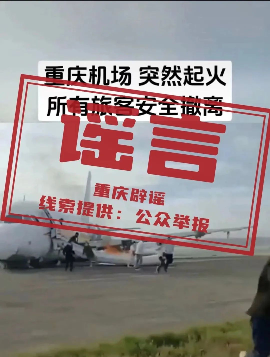 網(wǎng)傳信息為發(fā)布于某網(wǎng)站平臺(tái)的一條短視頻,視頻畫(huà)面顯示一客機(jī)停放在飛機(jī)跑道上,不少乘客正從飛機(jī)客艙中跑出,并配文稱“重慶機(jī)場(chǎng)突然起火,所有旅客安全撤離”。