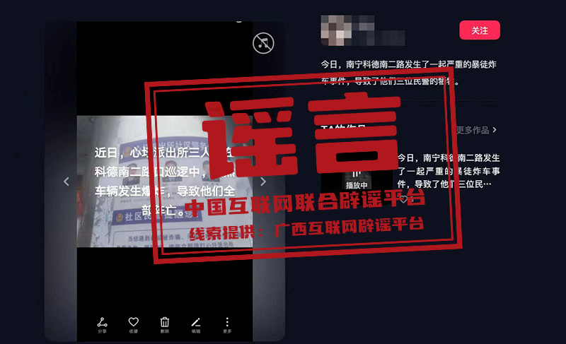 謠 言 廣西南寧某派出所車(chē)輛爆炸三人犧牲?