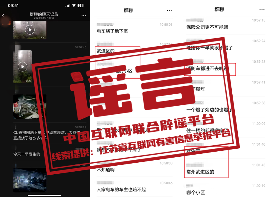 謠 言 江蘇常州一小區(qū)電車(chē)充電連環(huán)爆炸火燒地下室?
