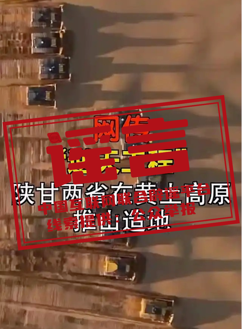 真相:近日,有關(guān)“甘肅和陜西準備花上萬億推平黃土高原造5億畝良田”的短視頻在網(wǎng)上流傳,引發(fā)社會關(guān)注。經(jīng)查,該信息系謠言,網(wǎng)傳視頻內(nèi)容多為個人講述和推土施工的影像資料剪輯,并沒有提供任何文件。經(jīng)媒體求證,陜西省農(nóng)業(yè)農(nóng)村廳農(nóng)田建設(shè)管理處及甘肅省自然資源廳國土空間規(guī)劃局(省規(guī)劃委員會辦公室)表示,“并無相關(guān)政策出臺”“暫無此類考慮”。(來源:陜西省互聯(lián)網(wǎng)聯(lián)合辟謠平臺、甘肅地區(qū)聯(lián)合辟謠平臺、紅星新聞)