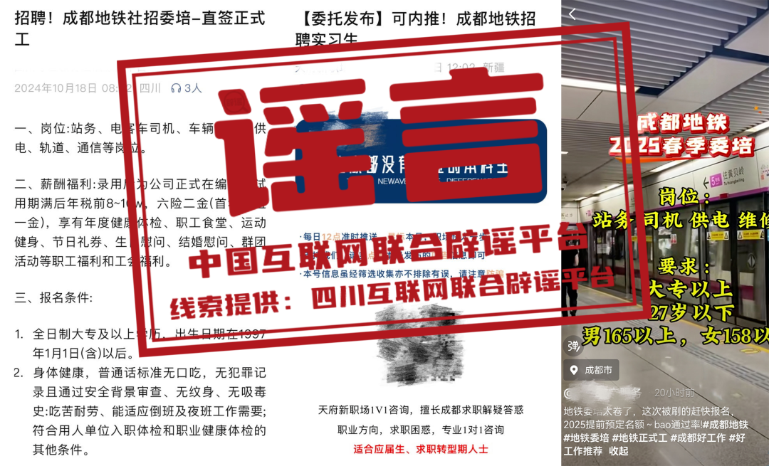 謠 言 成都地鐵招聘“提前預(yù)定名額”?濟(jì)南地鐵校園招聘有“真題”?