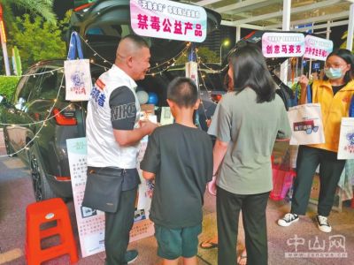 9月25日,夜幕降臨,中山市南區(qū)大信星匯店外,南區(qū)打擊治理電信網(wǎng)絡犯罪、掃黑除惡暨禁毒宣傳晚會的精彩表演吸引了不少市民駐足觀看。李德朗身穿白色的義工服,正積極向來來往往的行人介紹各款由戒毒學員制作的手工作品。被毒癮困擾多年成功戒斷的李德朗在清風自游人公益服務中心社工引導下加入“友心人”隊伍,成為一名義工,對徹底擺脫毒癮更有信心。